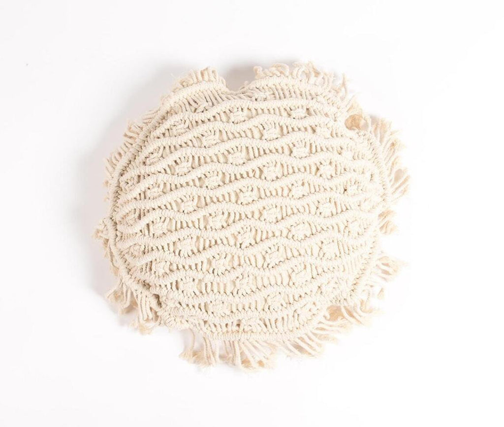 Bring a bit of fashion and zip to your space with this eye-catching and comfy 15-inch x 15-inch beige round wavy stripe cotton throw pillow cover with fringe. This beige colored decorative pillow cover is made from high grade cotton that is durable and long lasting. Charming decorative fringe give this design texture along with a hand-crafted look and feel. Decorative throw pillows not only add color and dimension to your space but can be comfy and supportive when you are lounging and cuddling as well. A great decorative accessory for your favorite chair, to accent your sofa, or to use as part of your bed ensemble. 15-inch H x 15-inch W x 0.1-inch D