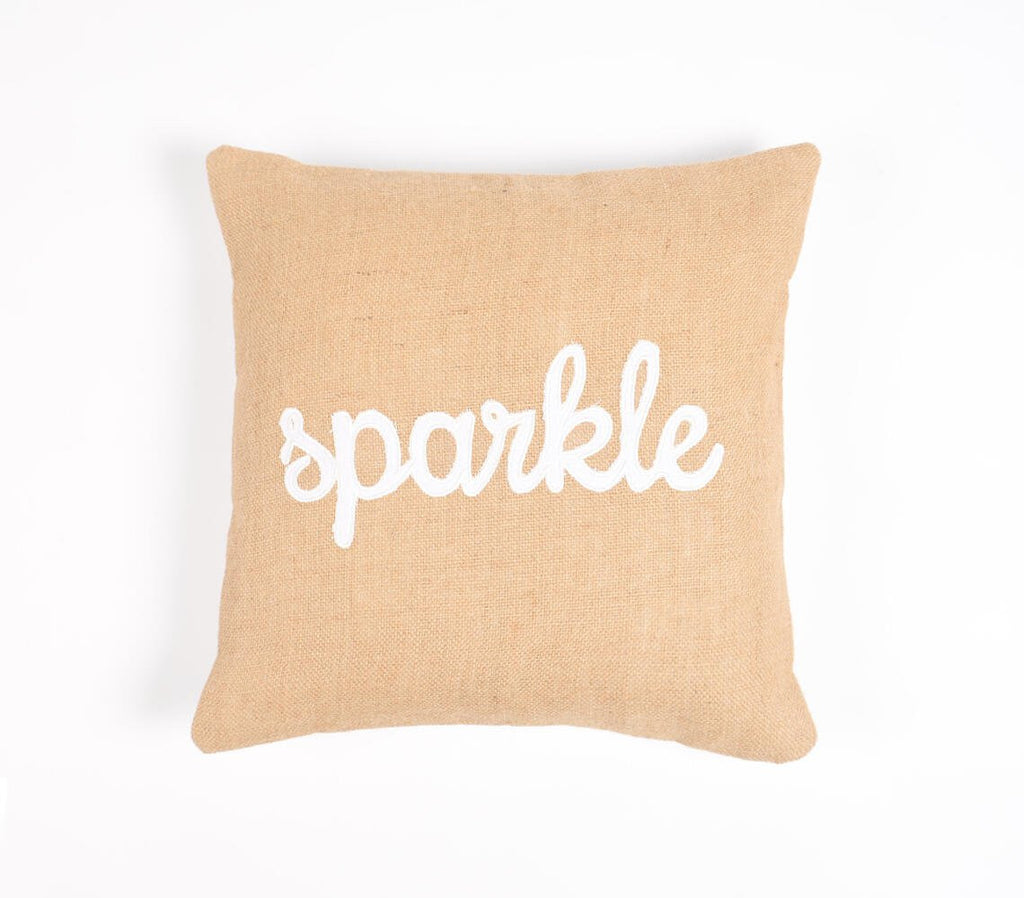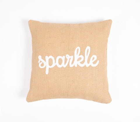 Add an air of fashion to your room and rejuvenate the space with this cute and fashionable 16-inch beige and white jute throw pillow cover with embroidery. The beige and white coloring of the extremely durable and long lasting jute pillow cover will add dimension and texture to your space. Emblazoned with the text sparkle this pillow adds some visual interest and decor to your space. For anyone that loves to decorate or accent their space with color and texture. Decorative pillows are a great way to change up the look and feel of your space easily and quickly. 16-inch H x 16-inch W x 0.1-inch D