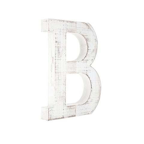 16" Distressed White Wash Wooden Initial Letter B Sculpture