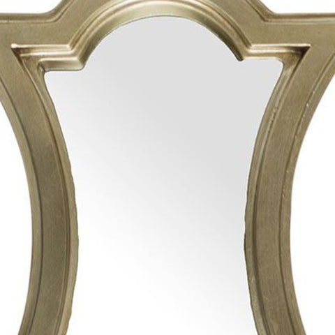 Beautify your space with an ornament that's original and unique at the same time with this 16-inch gold abstract wood framed accent mirror. The frame of this mirror is made from wood which has a gold color to it. The abstract shaped mirror adds a nice touch of depth and texture and also makes it very practical. This frame works nicely with the full-bodied mirror in the middle. Its both exceptional and tasteful, and its tough as well. This mirror will not only be a great practical addition to any location of your home but will also help elevate the space in the room. 15.64-inch H x 12.25-inch W x 2.55-inch D