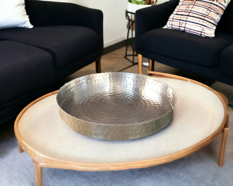 16" Silver Handcrafted Hammered Stainless Steel Round Tray