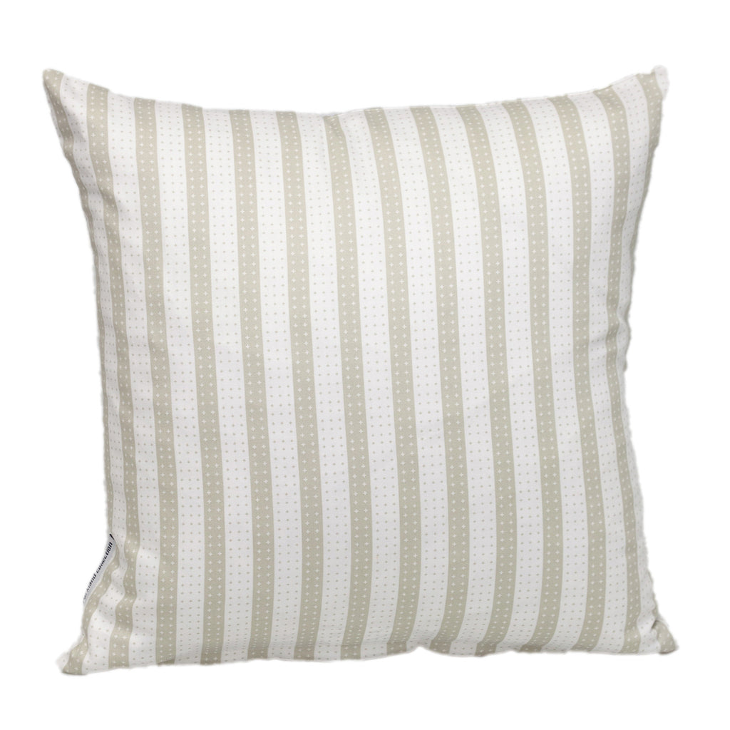 This 16-inch taupe and white striped cotton throw pillow will add a beautiful decorative accent to your decor. This taupe and white colored decorative pillow is made from high grade cotton that is durable and long lasting. This soft polyfill filled pillow not only is decorative but made to be comfy and cozy all day long. Great to use on its own or mix with other decorations for the perfect look. Decorative pillows are a great way to change up the look and feel of your space easily and quickly. 16-inch H x 16-inch W x 7-inch D