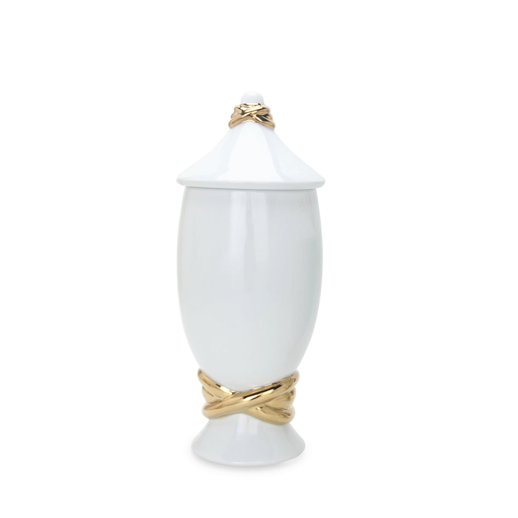 16" White and Gold Abstract Urn Ceramic Ginger Jar