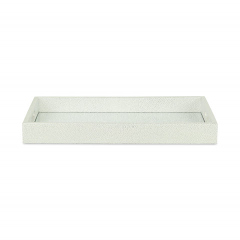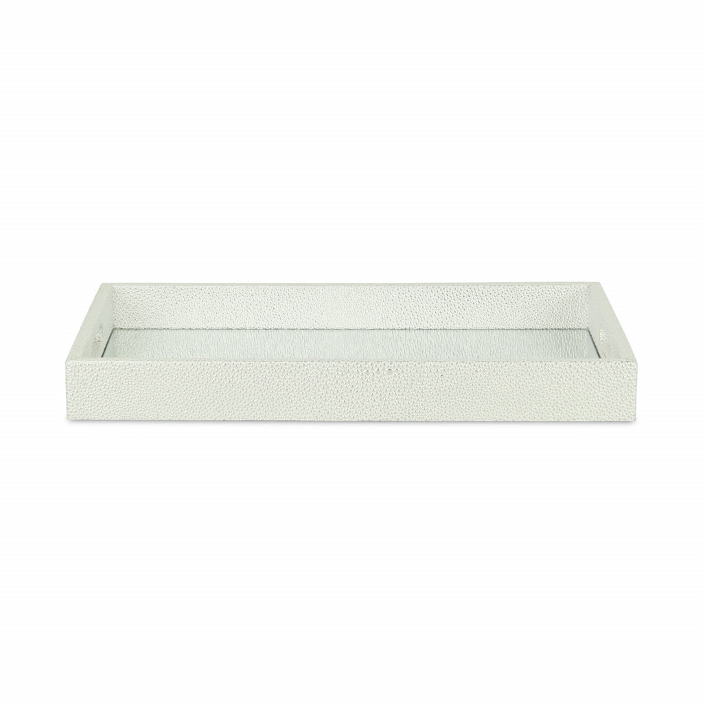 16" White Silver Rectangular Wood Handmade Tray With Handles
