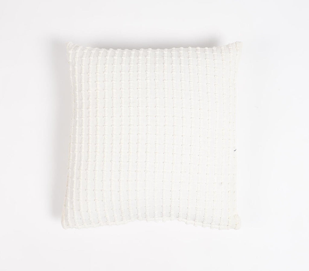 The 16-inch white striped cotton throw pillow cover is the perfect decorative accessory for your home. The white coloring of the extremely durable and long lasting cotton pillow cover will add dimension and texture to your space. Great to use on its own or mix with other decorations for the perfect look. Decorative pillows are a great way to change up the look and feel of your space easily and quickly. 16-inch H x 16-inch W x 0.1-inch D
