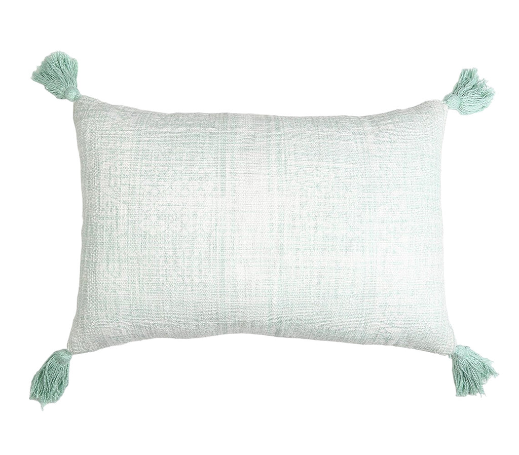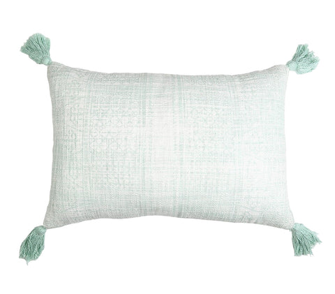 This 16-inch x 24-inch mint green hand woven indoor outdoor throw pillow cover with tassels will add a beautiful decorative accent to your decor. The mint green coloring of the soft and long lasting 100% cotton pillow cover will add dimension and texture to your space. Fun and decorative tassels add some high end and hand-crafted textural designer touches. Durable and rugged enough for outdoors but can still be used inside as well. Great to use on its own or mix with other decorations for the perfect look. 16-inch H x 24-inch W x 0.1-inch D