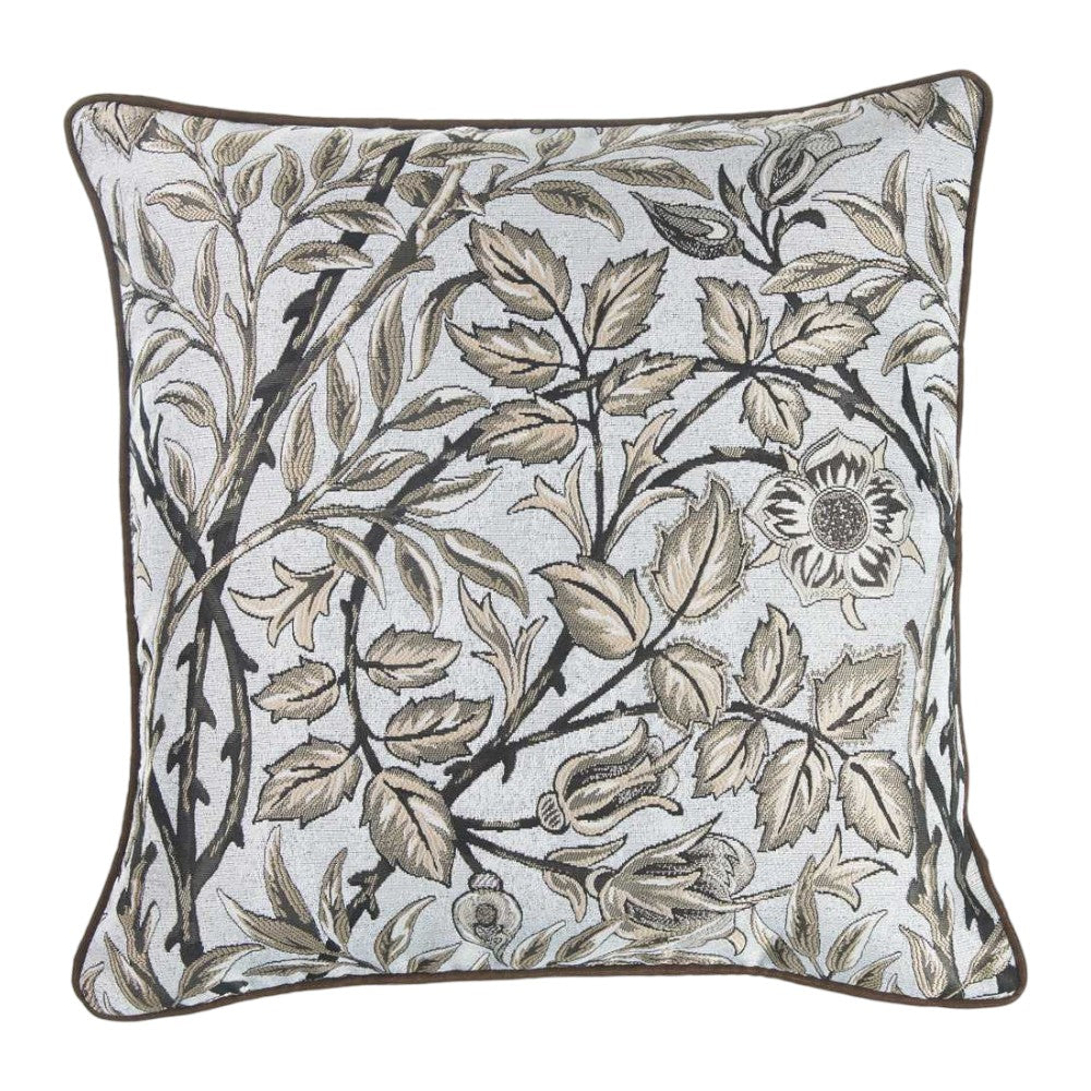 17" Blue Beige and Black Floral Throw Pillow Cover