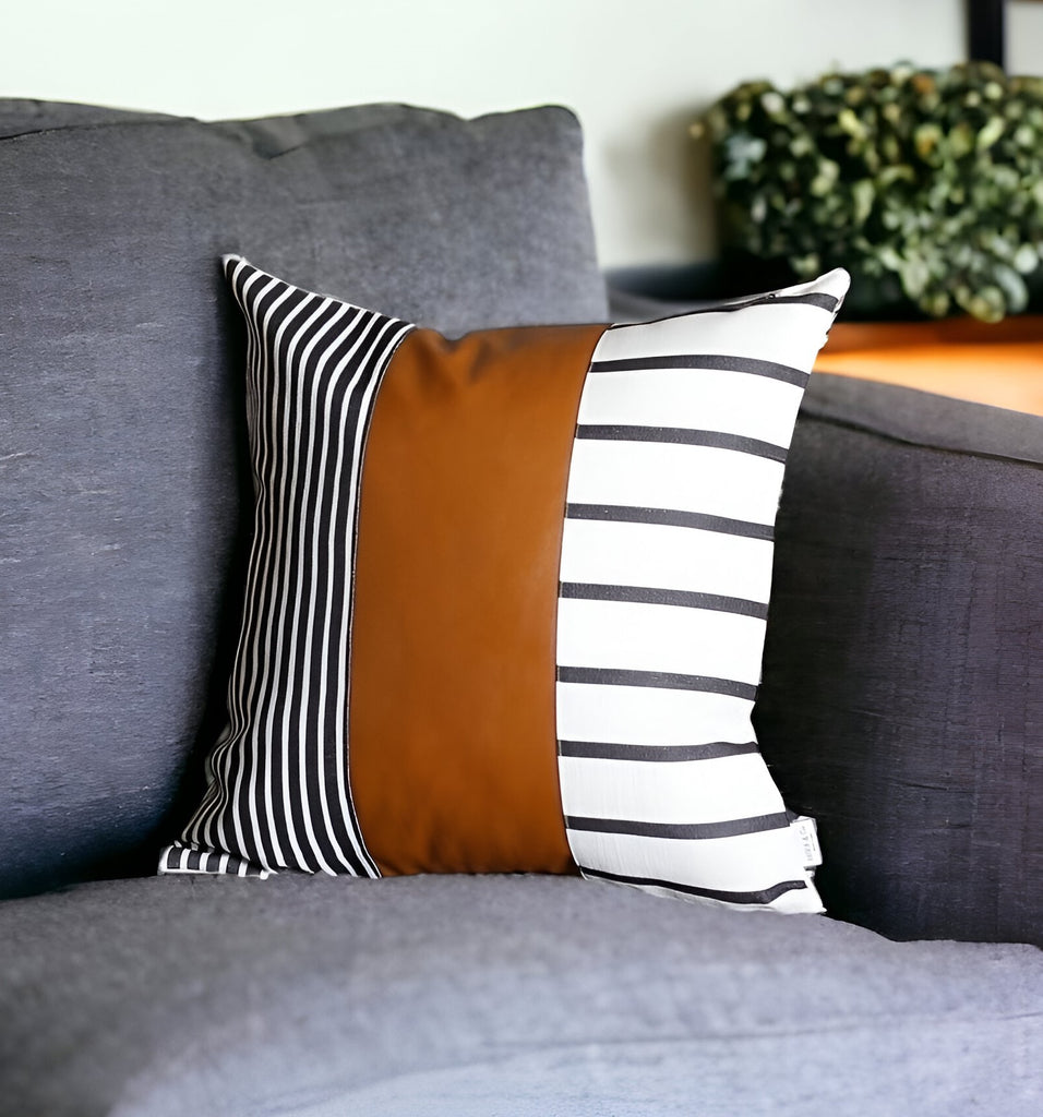 Unique and decorative, this comfortable 17-inch brown and white faux leather throw pillow cover will leave a lasting impression. This brown and white colored decorative pillow cover is made from high grade faux leather that is durable and long lasting. Great to use on its own or mix with other decorations for the perfect look. A great decorative accessory for your favorite chair, to accent your sofa, or to use as part of your bed ensemble. 17-inch h x 17-inch w x 1-inch d
