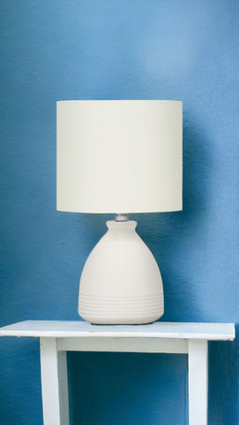 17" Cream Ceramic Round Table Lamp With Cream Drum Shade
