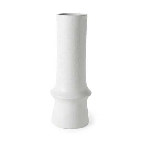 Enhance your home decor with the sleek and stylish 17-inch white abstract ceramic table vase. Its modern design and cylinder shape make it a perfect addition to any room. Made from quality ceramic material, this vase exudes elegance and sophistication. The crisp white color adds a touch of freshness to your space, effortlessly complementing any interior style. Display it on your table or shelf to create a chic focal point that will surely impress your guests. Perfect for showcasing your favorite blooms or standing beautifully on its own, this vase is a versatile piece that brings a contemporary flair to your home ambiance. 17-inch h x 7-inch w x 7-inch d.