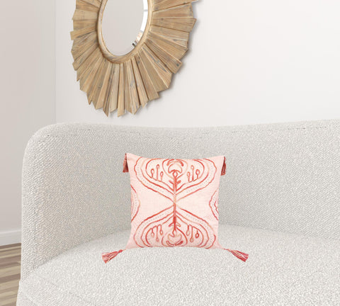 17" X 17" Coral Damask Zippered Polyester Throw Pillow With Tassels