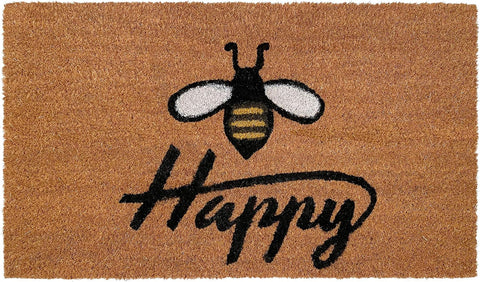 Known for it's extreme durability and ability to withstand heavy foot traffic, this 17-inch x 29-inch natural and black coir bumblee bee happy outdoor door mat is an ideal option for the front door or entrance way of your home or business. Crafted from coconut husks, this mat is not only functional but is an an eco-friendly and visually appealing accessory. The naturally bristled texture of coir is an efficient way to clean dirt and mud from shoes and is easy to clean and maintain. Add this decorative mat to create a practical yet inviting welcome to all who enter. 17-inch H x 29-inch W x 0.6-inch D