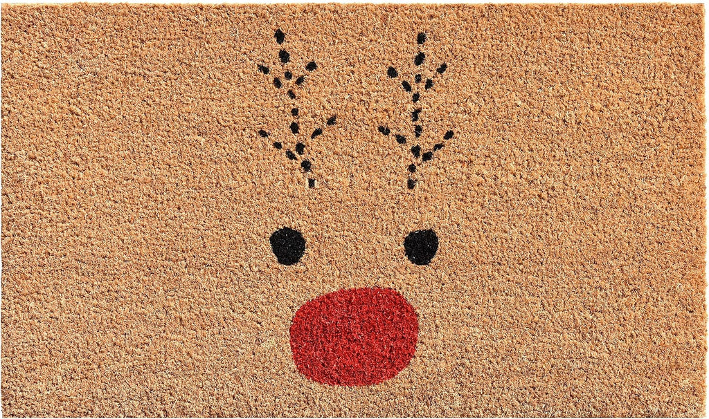 Known for it's extreme durability and ability to withstand heavy foot traffic, this 17-inch x 29-inch natural black and red coir reindeer outdoor christmas door mat is an ideal option for the front door or entrance way of your home or business. Crafted from coconut husks, this mat is not only functional but is an an eco-friendly and visually appealing accessory. The naturally bristled texture of coir is an efficient way to clean dirt and mud from shoes and is easy to clean and maintain. Add this festive and decorative christmas mat to create a practical yet inviting welcome to all who enter. 17-inch H x 29-inch W x 0.6-inch D
