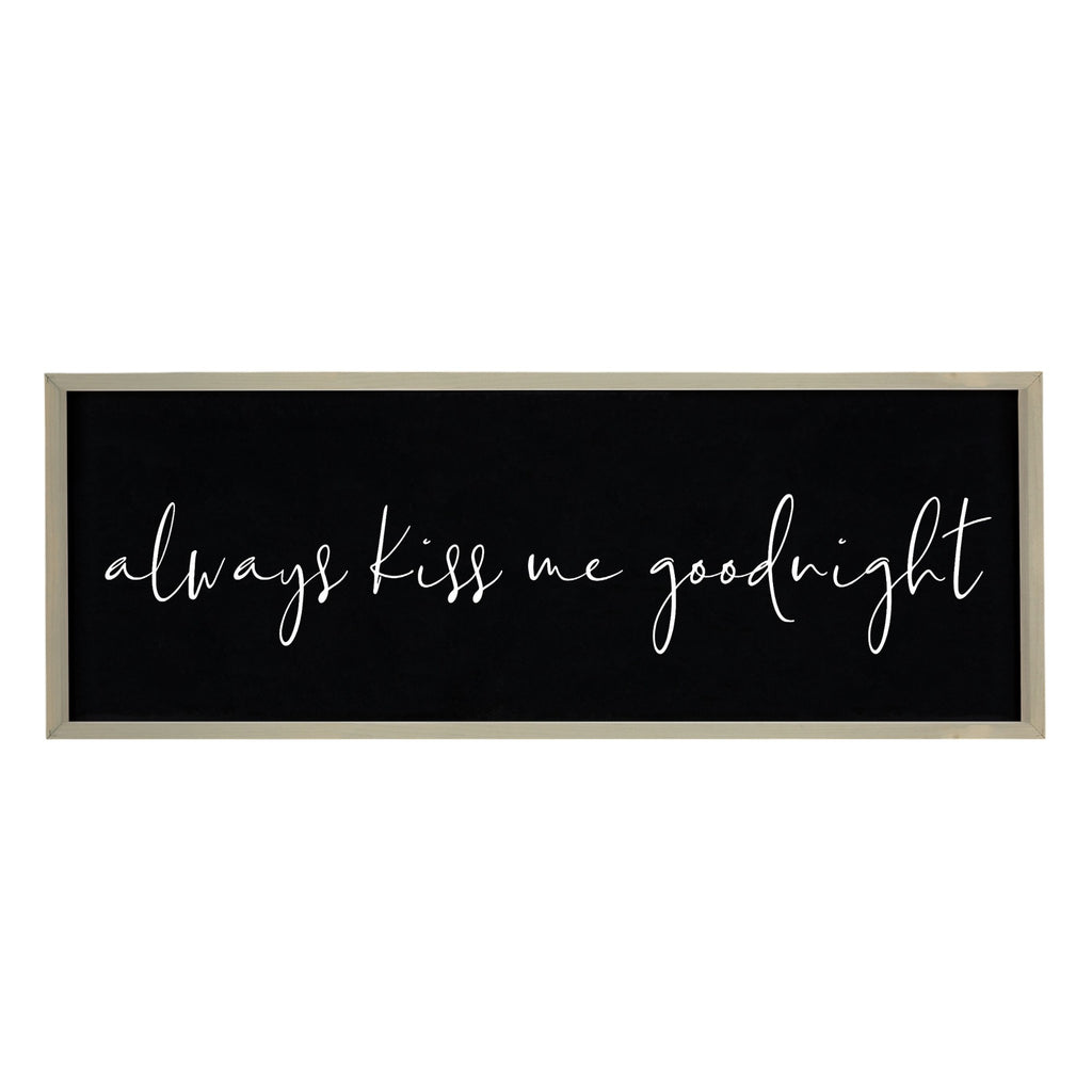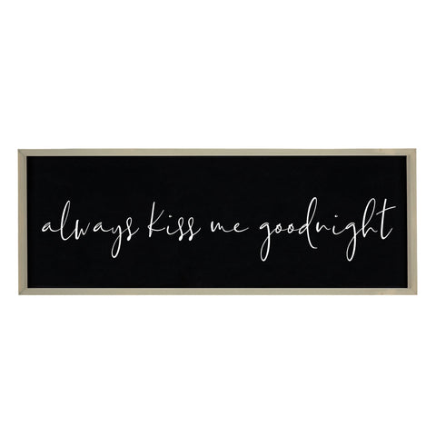 This 17-inch x 46-inch brown and black always kiss me solid wood wall decor will add a beautiful decorative accent to your decor. Instantly liven up your space with this art that brings color and dimension to your walls. This good looking decor will fill the empty space on your wall while adding a stylish and decorative touch. Utilize this opportunity to create a focal point in the room with this fabulous wall decor option. 16.75-inch h x 45.75-inch w x 2-inch d
