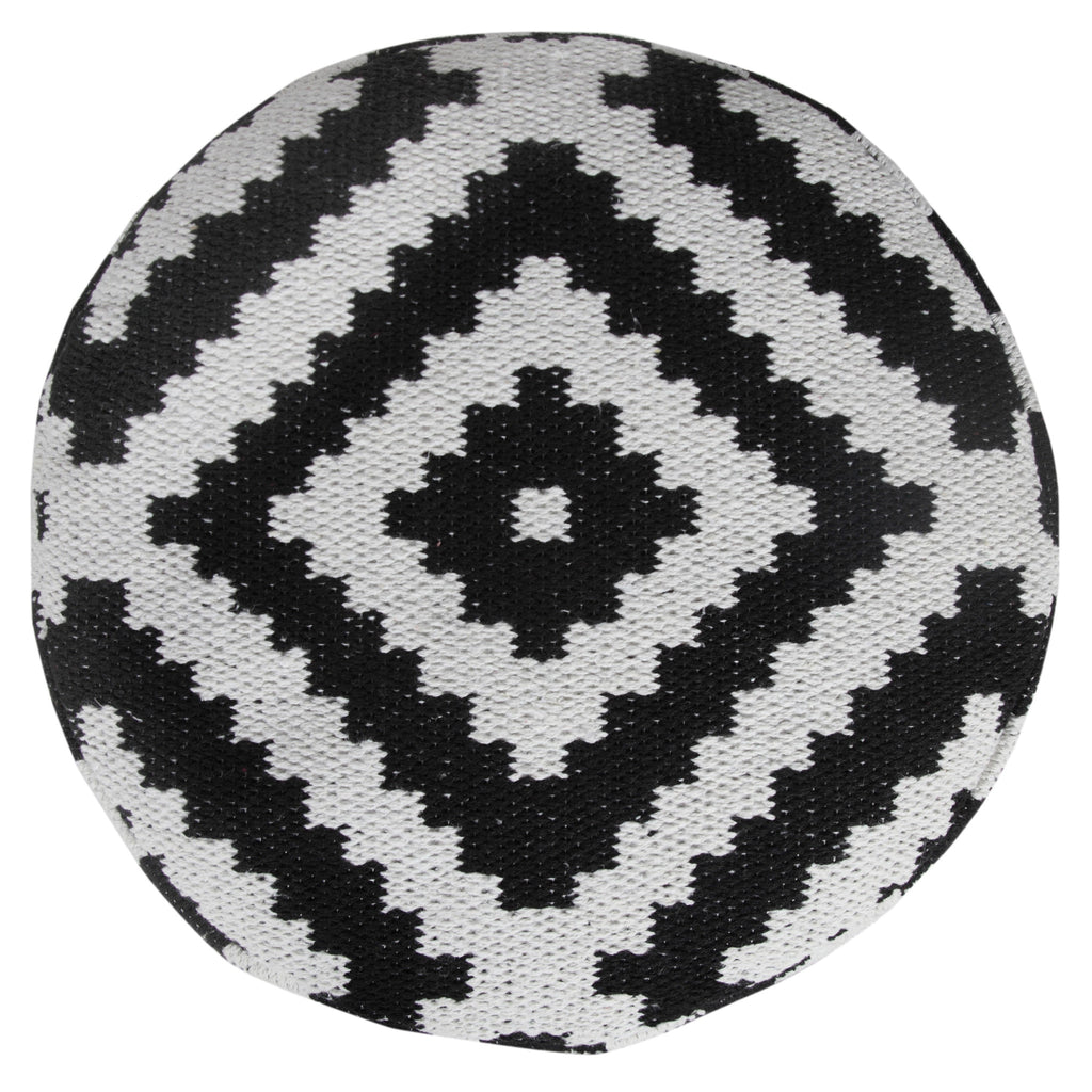 Add a good looking decorative accent to your space that is also practical for seating. Add chic style to your space with this fun pouf that not only looks cool but can be a great foot rest or extra seat when needed. Expertly upholstered with padding and soft cotton blend in a geometric pattern, this ottoman is as comfortable as it is good looking. Ottomans are multi-functional additions to your space that add fashion and practical value. 14-inch h x 18-inch w x 18-inch d.