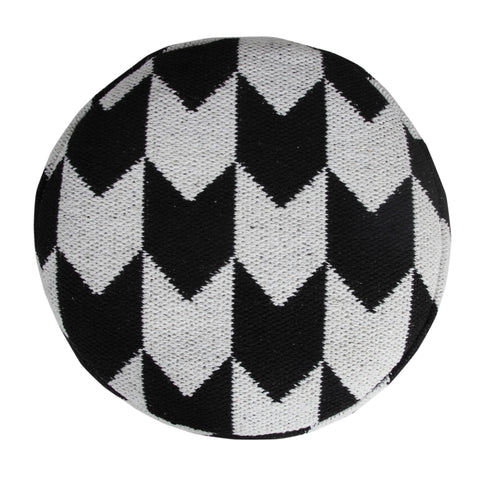 Optimize your space and add some charm to your room with the 18-inch black cylinder chevron pouf ottoman. Add chic style to your space with this fun pouf that not only looks cool but can be a great foot rest or extra seat when needed. Expertly upholstered with padding and soft cotton blend in a chevron pattern, this ottoman is as comfortable as it is good looking. Easy to blend into most any room, a ottoman is a way to add a good looking accent to your space that can also be practical and useful. 14-inch h x 18-inch w x 18-inch d.