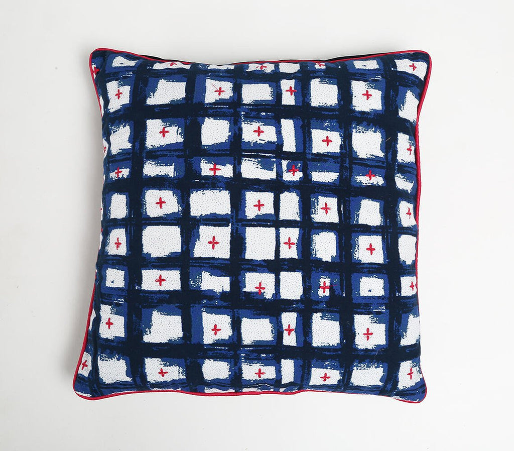 Add an air of fashion to your room and rejuvenate the space with this cute and fashionable 18-inch blue and white abstract cotton blend throw pillow cover. Durable blue and white cotton blend has been used to give this pillow cover a beautiful look that will stand the test of time. Decorative throw pillows not only add color and dimension to your space but can be comfy and supportive when you are lounging and cuddling as well. Decorative pillows are a great way to change up the look and feel of your space easily and quickly. 18-inch H x 18-inch W x 0.1-inch D