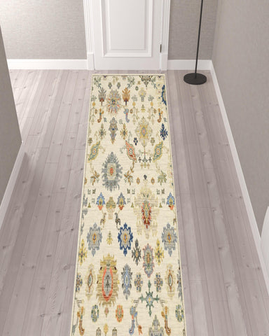 Add some artistry to your room with this 12-foot blue and ivory genuine wool oriental runner rug with fringe. Ideal for spaces with kids and pets, this rug is stain resistant to help repel dirt and spilled liquids. Crafted from genuine wool fibers that give this piece premium texture, refinement, and appeal. Rugs are a great way to showcase your style, hide imperfections, warm your home and reduce noise. This rectangular shaped rug features a abstract design that will add a functional and decorative accent to your space. Tassel ends bring a timeless and fashionable look to your interior. 30.71-inch h x 145.67-inch w x 0.31-inch d.