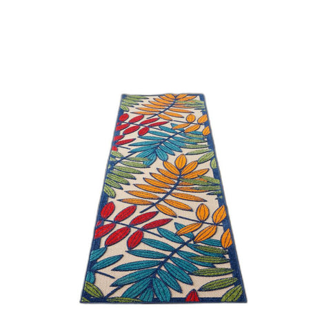 Add great coloration and comfortable texture to your space with this 10-foot ivory and blue floral indoor outdoor area rug. This rectangle shaped rug features a floral design that will work well both indoors or out. A classic shape marries with good looking design for your living room, hall, bedroom, porch, patio, or poolside. Makes a great way to dress up your patio, porch, or poolside, but also works well as a durable and easy to maintain option in the kitchen, family room, or mudroom. 27-inch h x 120-inch w x 1-inch d.