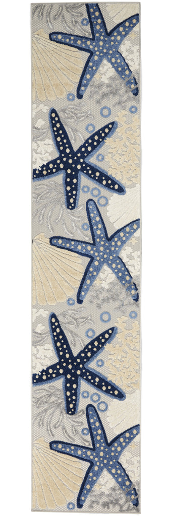 12' Blue And Gray Nautical Indoor Outdoor Runner Rug
