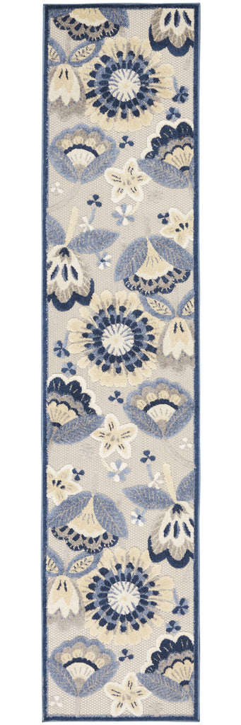 Set an inviting tone in your space with this 12-foot blue and gray indoor outdoor runner rug. Makes a great way to dress up your patio, porch, or poolside, but also works well as a durable and easy to maintain option in the kitchen, family room, or mudroom. Crafted through machine-made construction, this runner offers a consistent quality and design, ensuring it withstands outdoor elements while adding a stylish touch to your living areas. 27-inch h x 144-inch w x 0.25-inch d.