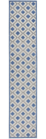 12' Blue And Gray Indoor Outdoor Runner Rug