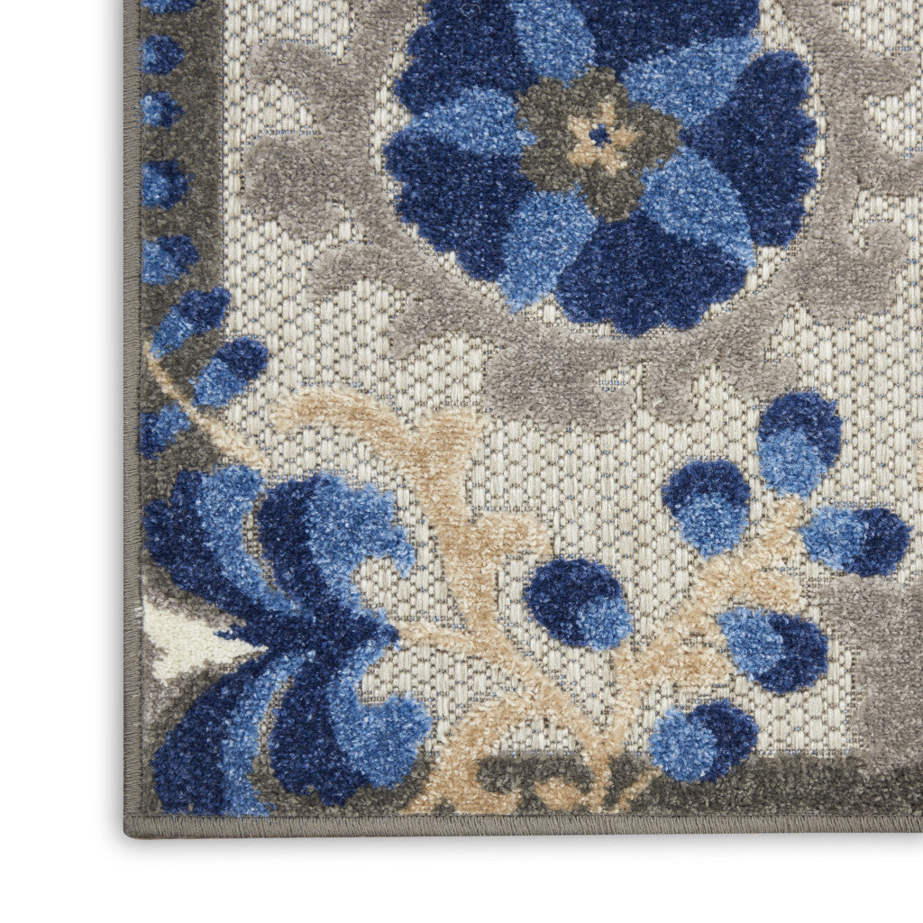 12' Blue And Gray Indoor Outdoor Runner Rug