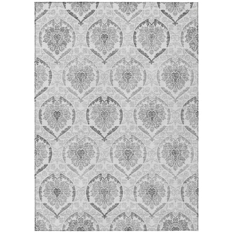 Add some artistry to your room with this 5-foot x 8-foot silver gray and charcoal medallion washable indoor outdoor area rug. This rectangle shaped rug features a medallion design that will work well both indoors or out. A classic shape marries with good looking design for your living room, hall, bedroom, porch, patio, or poolside. Ideal for outdoor spaces or high traffic areas with kids and pets, this rug is made from heavy duty polyester that is stain resistant to help repel water, dirt, and stains. Versatile in use, durable, and easy to maintain, this rug is an ideal solution to add a decorative and inviting touch to your indoor or outdoor space. 60-inch h x 90-inch w x 0.19-inch d.