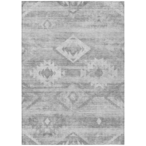 This 5-foot x 8-foot silver gray and charcoal southwestern washable indoor outdoor area rug, is a great way to add warmth to a room. This rectangle shaped rug features a southwestern design that will work well both indoors or out. A classic shape marries with good looking design for your living room, hall, bedroom, porch, patio, or poolside. Ideal for outdoor spaces or high traffic areas with kids and pets, this rug is made from heavy duty polyester that is stain resistant to help repel water, dirt, and stains. Versatile in use, durable, and easy to maintain, this rug is an ideal solution to add a decorative and inviting touch to your indoor or outdoor space. 60-inch h x 90-inch w x 0.19-inch d.