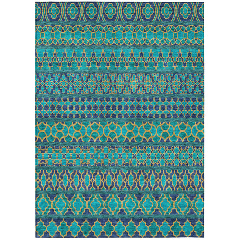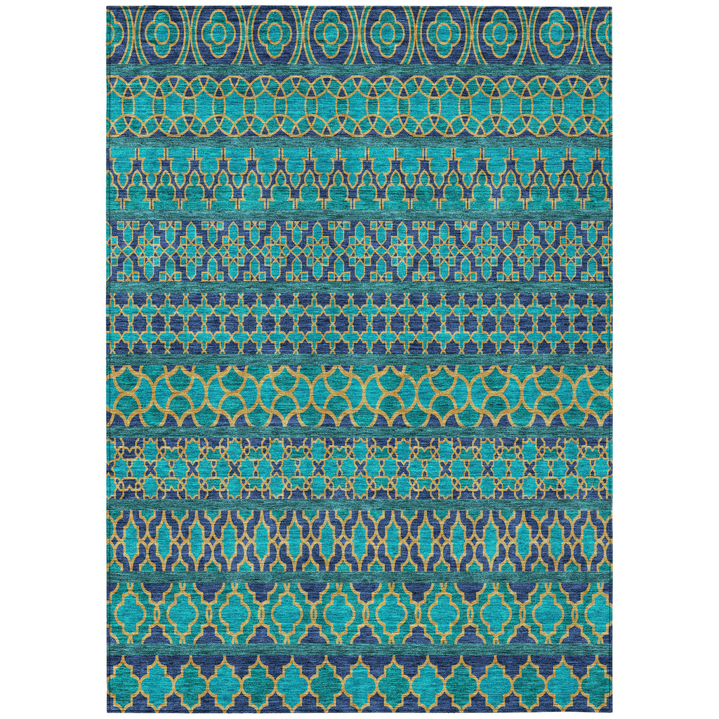 Add great coloration and comfortable texture to your space with this 5-foot x 8-foot teal blue and navy blue quatrefoil washable indoor outdoor area rug. This rectangle shaped rug features a quatrefoil design that will work well both indoors or out. A classic shape marries with good looking design for your living room, hall, bedroom, porch, patio, or poolside. Ideal for outdoor spaces or high traffic areas with kids and pets, this rug is made from heavy duty polyester that is stain resistant to help repel water, dirt, and stains. Makes a great way to dress up your patio, porch, or poolside, but also works well as a durable and easy to maintain option in the kitchen, family room, or mudroom. 60-inch h x 90-inch w x 0.19-inch d.